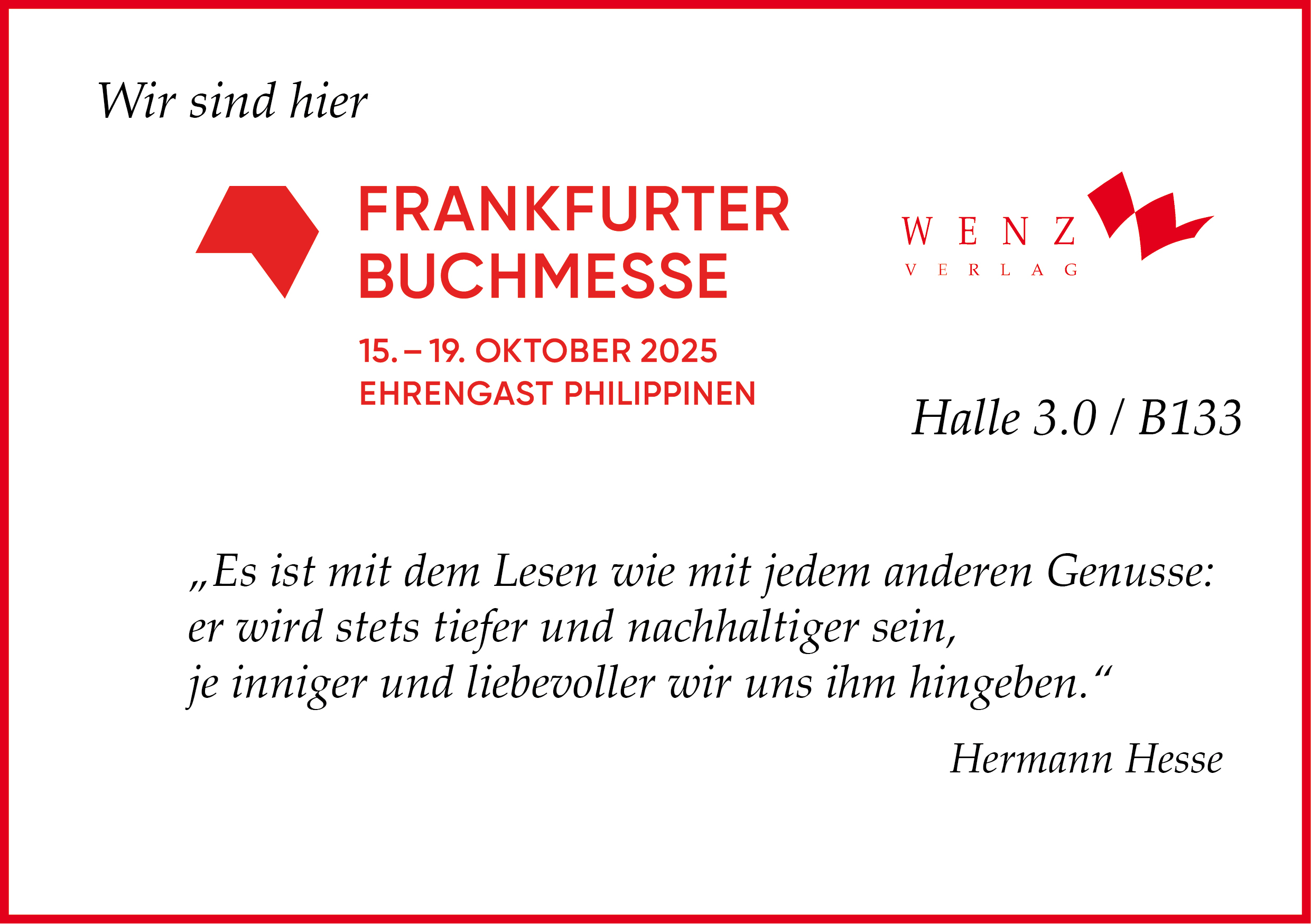 Der Wenz Verlag freut sich auf die diesjährige Leipziger Buchmesse, die vom 26. bis 30. März 2025 stattfindet. Wir würden uns freuen, Sie dort an unserem Stand begrüßen zu dürfen.